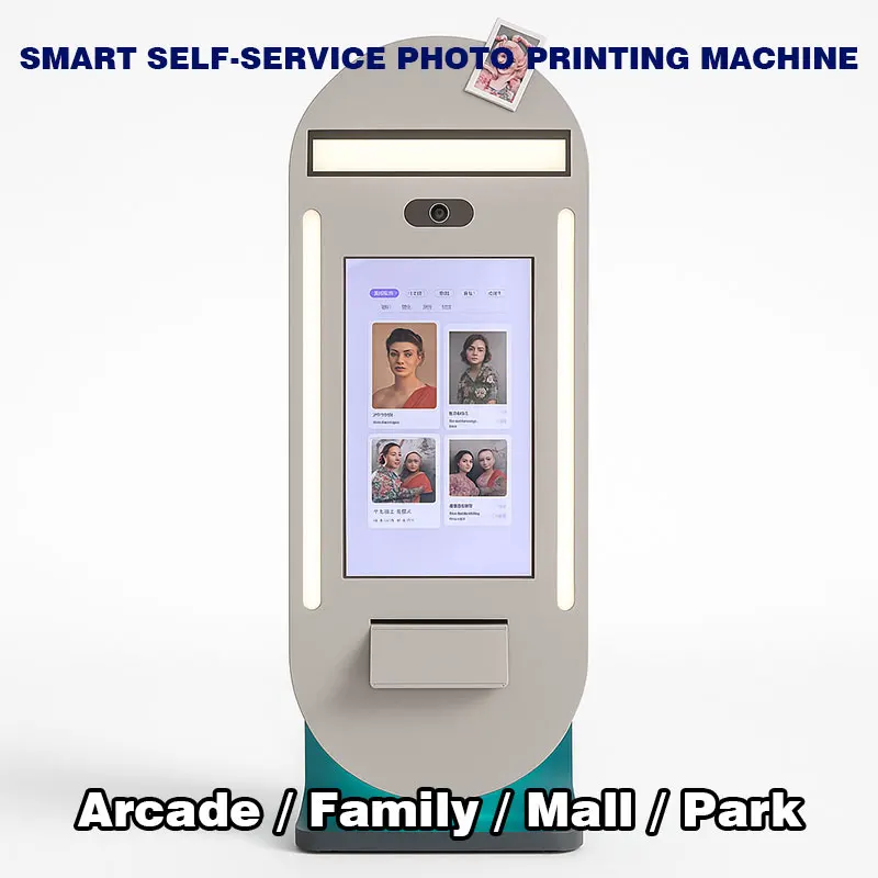 • Ninix Silver-Gray Teal Metal Commercial Self-Service Smart Terminal Interactive Auto-Operation Equipment Malls English