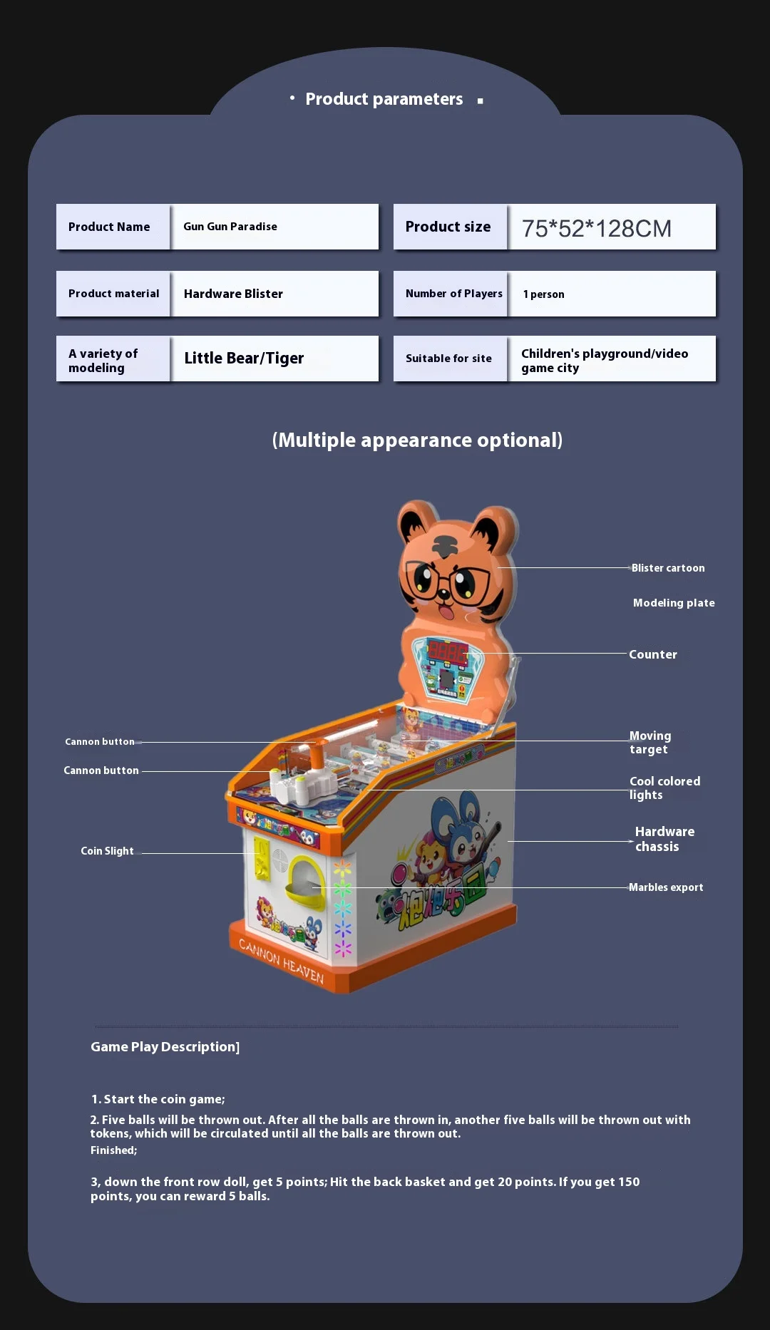 Marble machine Children's coin-operated game machine Ball shooting game machine Target shooting video game coin operated arcade machine amusement game