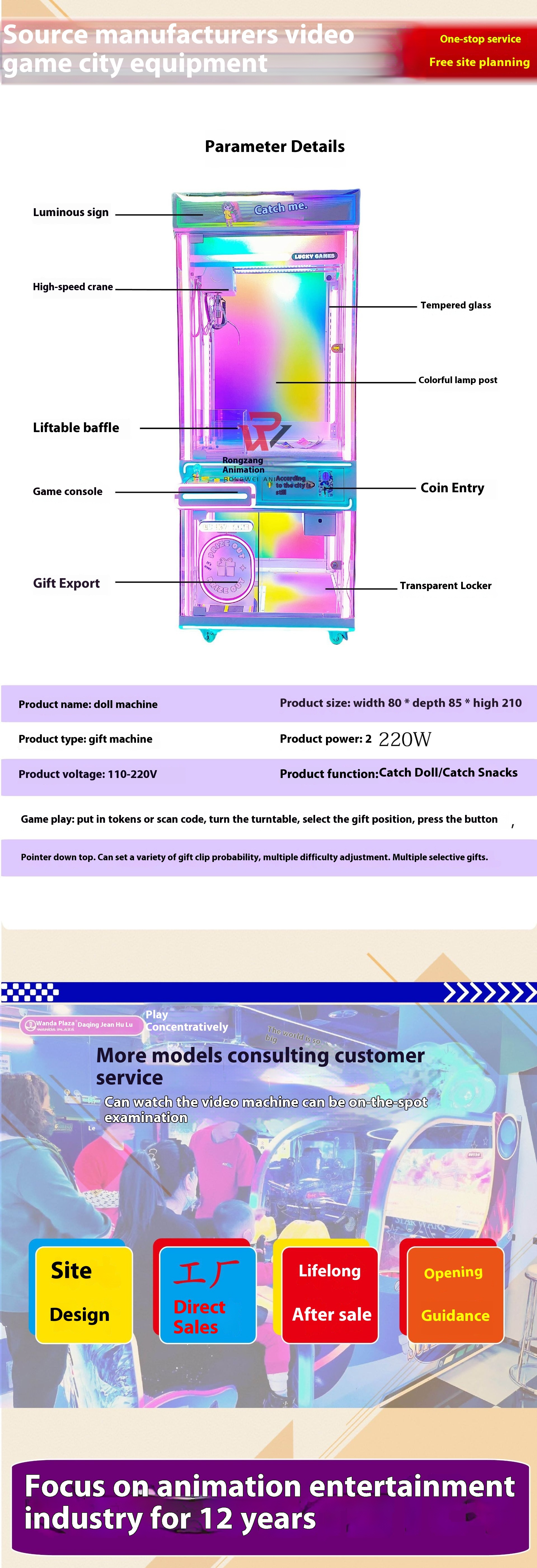 Doll Machine, Coin Operated Machine, VR Device, Vending Machine, Plaza Car