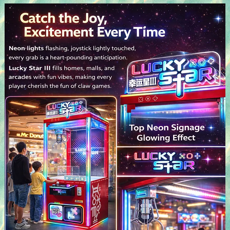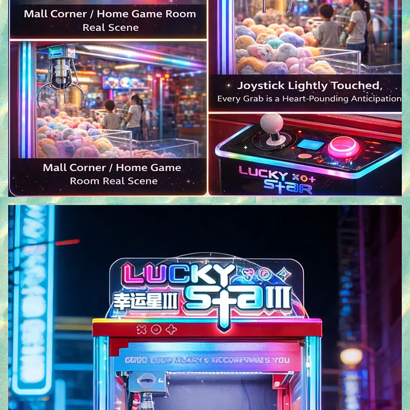 • Lucky Star III Clip Claw Machine | Commercial Transparent Arcade Prize Machine RGB LED Lighting Stainless Steel Metal